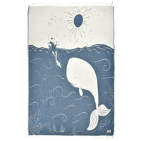 Exclusive XL Whale and Diver Peshtemal Pure Cotton Beach Towel