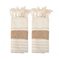 Enjoy La'Hammam's unique cotton Turkish peshtemal hand or kitchen towels for your everyday use, in the kitchen or as your go-to hand towel. These cotton towels can also be used as placemats, for cooking, as a hand towel, dish towel, kitchen towel, hair towel, face towel and gym towel. Available in white and stripes with an accent color of your choice and handmade white fringes.